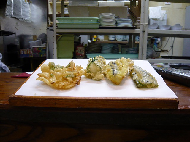 食べ方が分からなかったのだが、木の板がカウンターに置かれて、その上に天ぷらが順番に揚げられ、一品ずつ木の板にのせられてくる。
