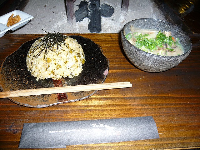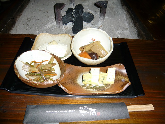 注文したのは、たかな定食。1,260円でたかな飯というイメージから量が少ないのだと思ってたら、なんのその・・・前菜として、煮しめなどが出てきて、食べていると、次に高菜飯とだご汁が運ばれてきた。