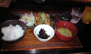 私はとんこつラーメンと餃子、連れは天津飯と餃子、から揚げ、スープのセットを注文し、そのから揚げは私が食べた。