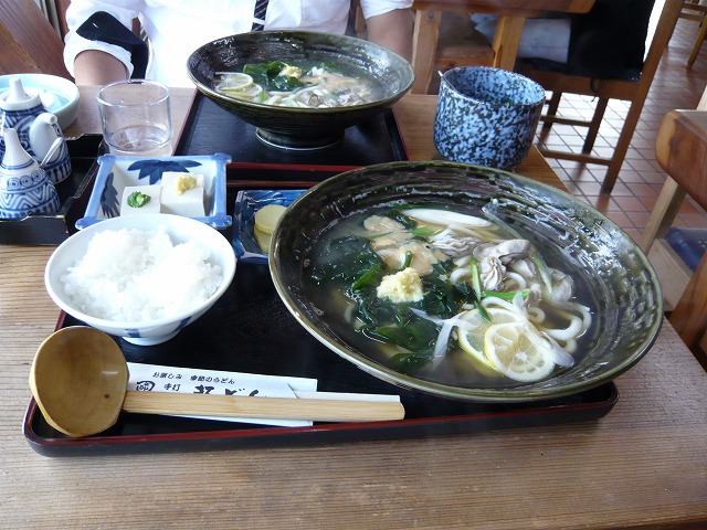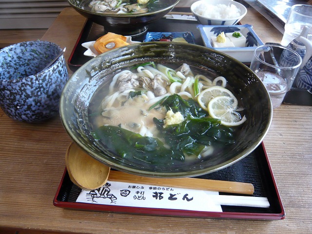 わかめたっぷりにレモンの香りがする牡蠣うどんはめっちゃ美味い!!